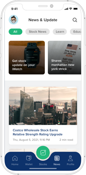 Check the performance of your stocks and your wallet at anytime.